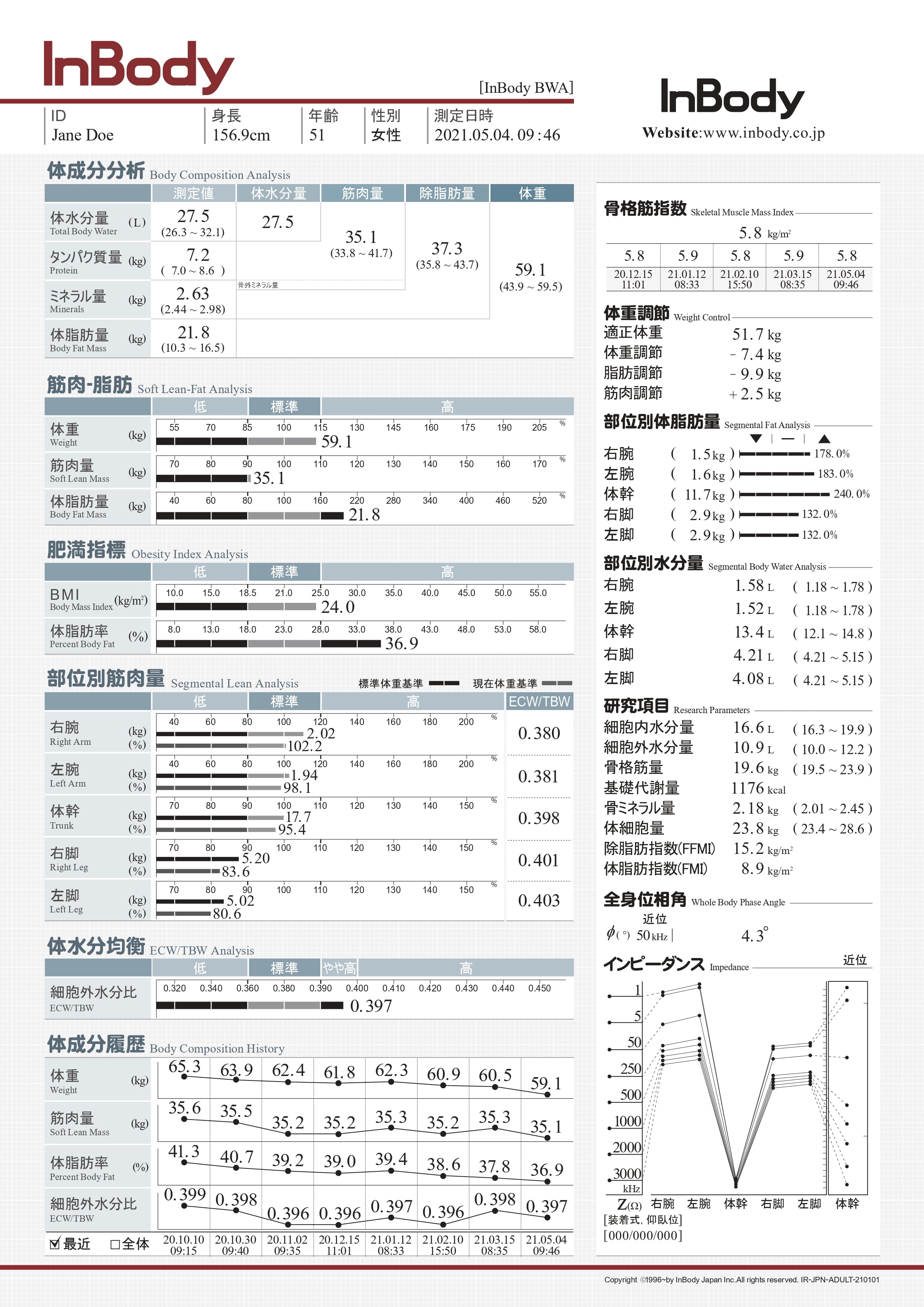 身長・体重・インピーダンスのみに基づいて体成分を算出します。